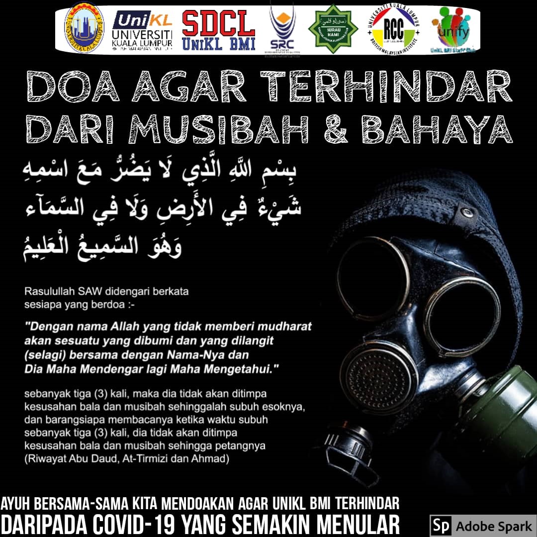 Memandangkan isu COVID-19 semakin meningkat, SURAU K.A.M.I bersama-sama dengan SDCL,SRC,RCC dan UNIFY mengajak kepada semua untuk sama2 berdoa memohon perlindungan ALLAH S.W.T. daripada wabak penyakit COVID-19.ย