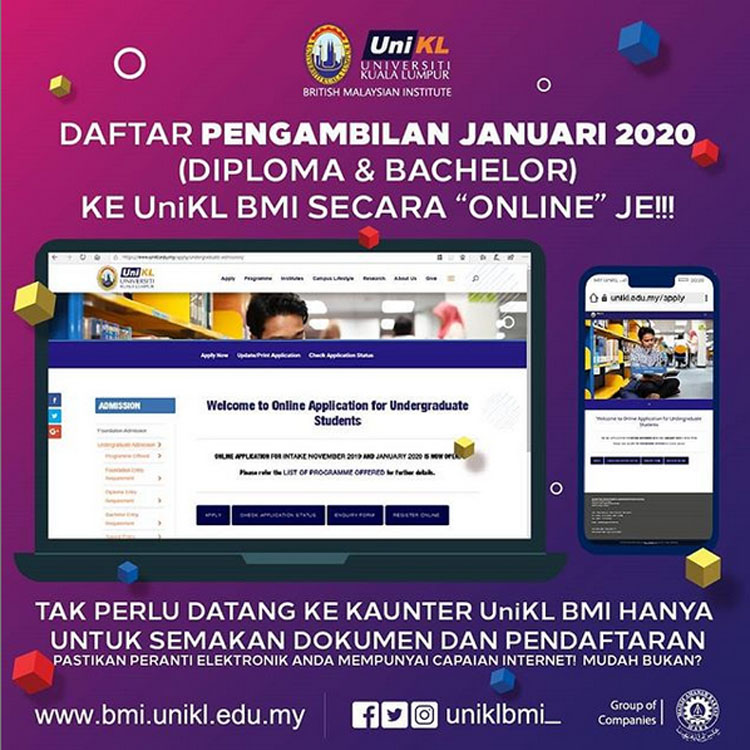 Permohonan dan maklumat lanjut mengenai program-program yang ditawarkan di UniKL BMI boleh rujuk website kami